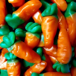 Le bonbon qui rend aimable... Un délicieux bonbon en forme de carotte au délicieux goût fruité ! Certifié Halal et sans Gluten.  Vendu par sachet de 100g. Ingrédients : Sirop de glucose, eau, sucre, amidon de maïs, stabilisants : gélatine, pectine, acidifiants : E330, E334, E296, arômes, huile...