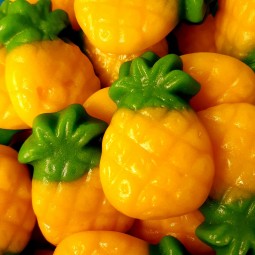 Le bonbon gélifié en forme d'ananas de 5,5 cm de long qui va vous faire voyager ! Vendu par sachet de 100g. Ingrédients : (sous réserve de modification par le fabricant) Sirop de glucose, eau, sucre, amidon de maïs, gélatine, acidifiant : acide citrique, huile végétale (de palme et/ou de coco),...