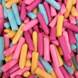 Découvre le célèbre bonbon en forme de petite craie hyper lisse de Hitschler, au délicieux goût fruits rouges ! Certifié sans gluten.  Vendu par sachet de 100g. Ingrédients : Sucre, sirop de glucose, dextrose, graisse de palme, 5% de jus de fruits à base de concentrés (pomme, pêche, citron,...