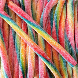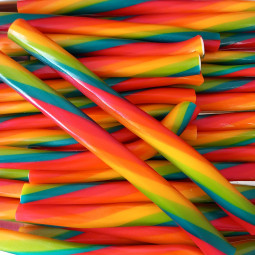 Le délicieux méga bonbon gélifié en forme de bâton, fourré au goût multi-fruit, d'une longueur d'environ 25cm ! Poids du bonbon à l'unité : 55g Vendu par lot de 2. Poids du lot : 110g  Ingrédients : sucre, sirop de glucose et de fructose, farine de blé (gluten), amidon, gélatine, graisse végétale...