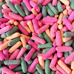 Découvre le célèbre bonbon en forme de petite craie hyper acidulé de Hitschler, au délicieux goût de fruit ! Certifié sans gluten. Vendu par sachet de 100g. Ingrédients : Sucre, sirop de glucose, dextrose, graisse de palme, 5% de jus de fruits à base de concentrés (pomme, pêche, citron, fraise,...