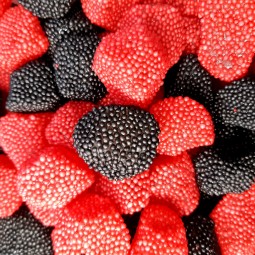 Bonbon gélifié en forme de grande mûre rouge et noire ! Vendu par sachet de 100g. Ingrédients : Sucre sirop de glucose, dextrose, eau, Gélifiants : gélatine, Acidifiants : E 330, Gélifiants : pectine, Acidifiants : E 270, Correcteur d'acidité : E 325, arômes, amidon de blé, proteïne de lait,...