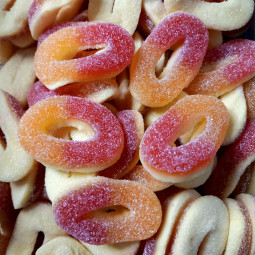 Ces anneaux saveur pêche sont un classique dans le domaine du bonbon, un extérieur acidulé avec un coeur fondant au délicieux goût pêche, un véritable délice ! Vendu par sachet de 100g. Ingrédients : Sirop de glucose, sucre, gélatine , Acidifiants : acide citrique et acide lactique, Agent...