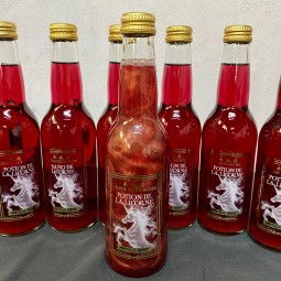 Découvre cet élixir des 3 sorciers, cette limonade potion de la Licorne est au goût Myrtille et Cassis. Mélange la et fais apparaître sa magie. (Pour un effet visuel optimal, remue plusieurs fois la bouteille de bas en haut.) L'élixir du Sang de Licorne te donnera le pouvoir de guérison ... À...