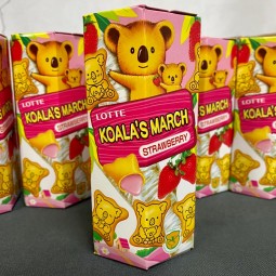 Petits biscuits japonais en forme de koala fourrés d'une crème à la fraise ! Crée en 1994 pour soutenir la Australian Koala Foundation, ONG qui aide à la recherche et à la préservation des koalas ! Poids : 37g Ingrédients : Fourrage au chocolat blanc (huile de palme, huile de colza, sucre,...