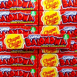 Maxi Chewing Gum de la marque Chupa Chups saveur fraise ! Poids : 27.6g Ingrédients : sucre, base de gomme, sirop de glucose, stabilisant (glycérol), arôme, émulsifiants (esters de saccharose et d'acides gras, lécithines (de SOJA)), colorant (carmin) antioxydant (E320) Déclaration nutritionnelle...