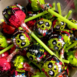 La sucette Sour Madness aux fruits est extra acide, idéale pour rendre ta soirée d'Halloween plutôt... Pimentée. Goût aléatoire : Orange Sanguine, Pastèque de l’Enfer, Cerise du Néant et Pomme Visqueuse. Poids : 10g Ingrédients : sirop de glucose, sucre, régulateurs d'acidité (acide citrique,...