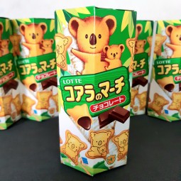Petits biscuits japonais en forme de koala fourrés d'une crème au Chocolat ! Crée en 1994 pour soutenir la Australian Koala Foundation, ONG qui aide à la recherche et à la préservation des koalas ! Poids : 37g Ingrédients : Huile végétale: palme, farine de BLE, pâte de cacao 30%, amidon de maïs,...