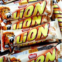 La fameuse barre Lion en version chocolat blanc ! Poids : 42g Ingrédients : Sirop de glucose-fructose, graisses végétales (palme, karité, palmiste), sucre, farine de blé, lait condensé sucré (lait entier, sucre), poudre de lait écrémé, lactosérum (à partir de lait), maltodextrine, amidon de blé,...