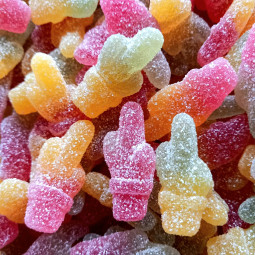 La fameuse bouteille rose et bleue en bonbon gélifié acidulée avec son délicieux goût bubblegum, ce bonbon a la particularité d'effectuer un retour en enfance immédiat ! Vendu par sachet de 100g. Ingrédients : Sirop de glucose - Sucre - Acidifiants (Acide malique, Acide citrique) - Correcteur...