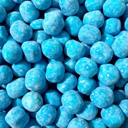 Ces fameuses petites boules sont fourrées d'une poudre bien acidulée et ont un délicieux goût de mûre, un véritable délice pour les papilles ! Vendu par sachet de 100g. Ingrédients : sucre, sirop de glucose, dextrose, 1,9% chlorure d'ammonium, extrait de réglisse, colorant E153, arôme