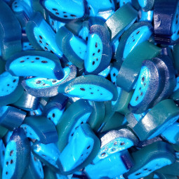 Ces tranches de pastèque sont à la fois amusantes et fortement savoureuses, il s'agit d'un bonbon qui peut être épluché pour être dégusté, même les pépins à l'intérieur peuvent être extraits du bonbon ! De plus, il est doté d'un goût intense de pastèque ! Vendu par sachet de 100g. Ingrédients :...