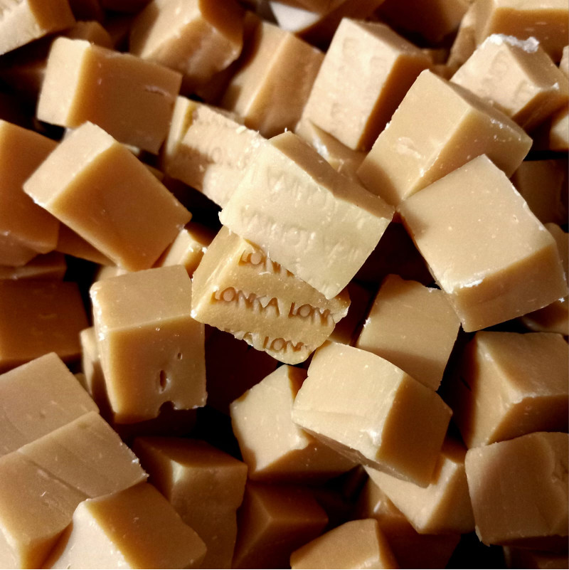 Confiserie caramélisée anglaise, salée au sel de mer et à la texture à la fois onctueuse et crémeuse, réalisée avec du beurre, du sucre et du lait.