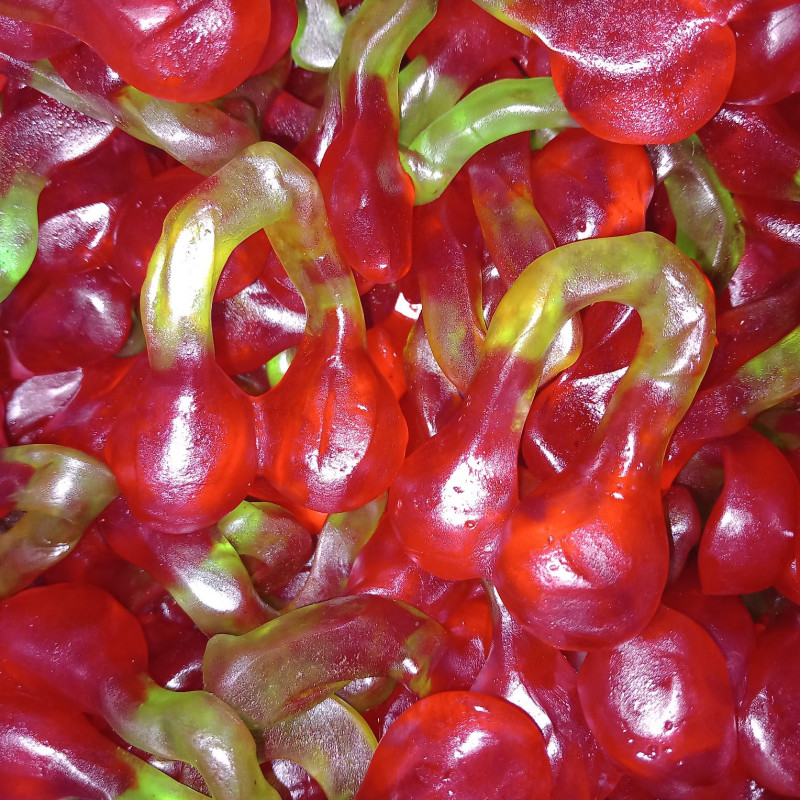 Le bonbon gélifié en forme et à la saveur de cerise, un grand classique très apprécié de tous ! Le petit plus c'est qu'il s'agit ici de cerises de tailles XL !